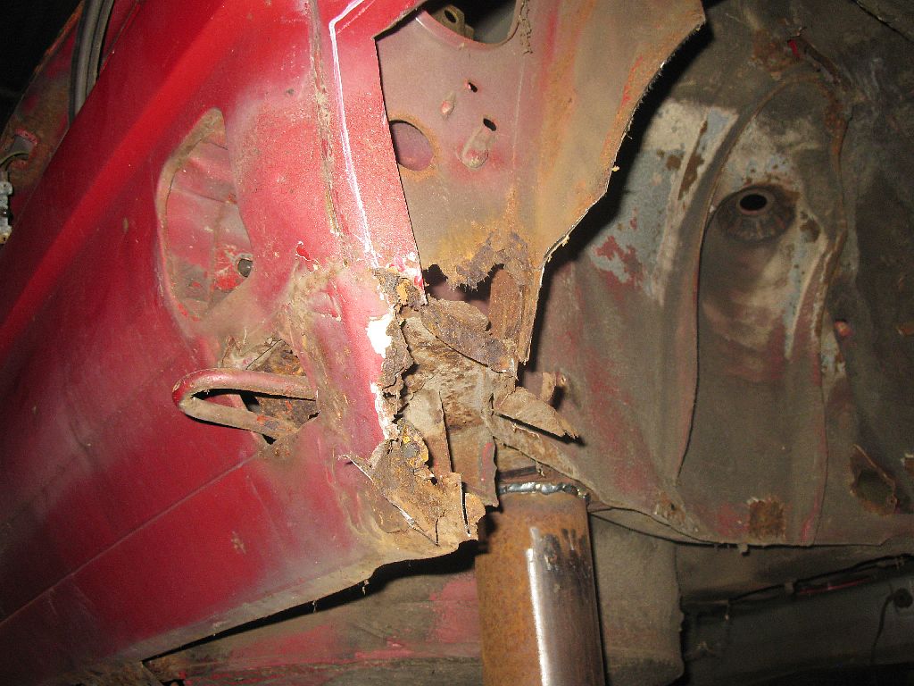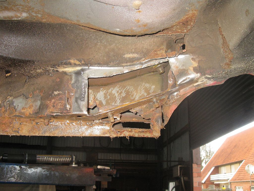 Großes Kino – ich konnte durch die komplette Aufnahme durchgucken. Nachdem ich den Rostherd herausgeschnitten hatte konnte ich sehen, dass die Verstärkung der Achsaufnahme auch weggegammelt ist. Meine Herren – ich frage mich, wieso die Achse überhaupt noch gehalten hat. Vermutlich nur noch aus Gewohnheit.