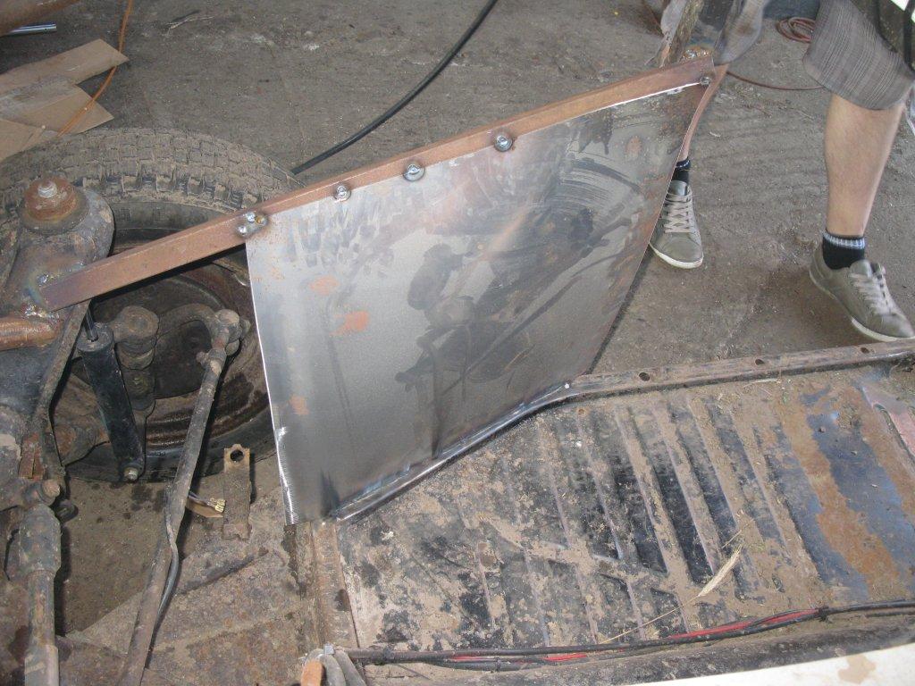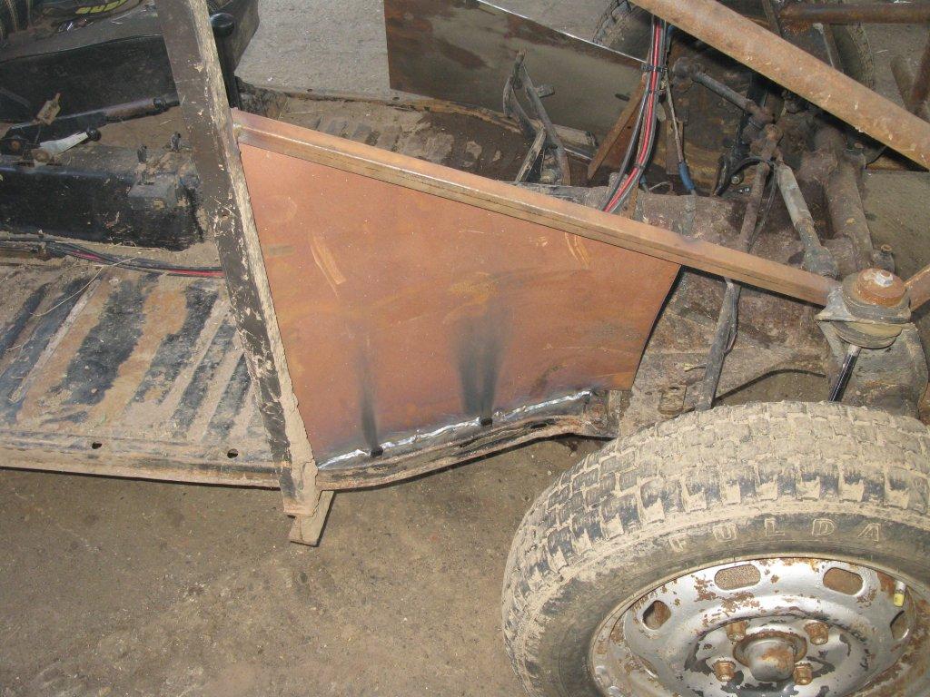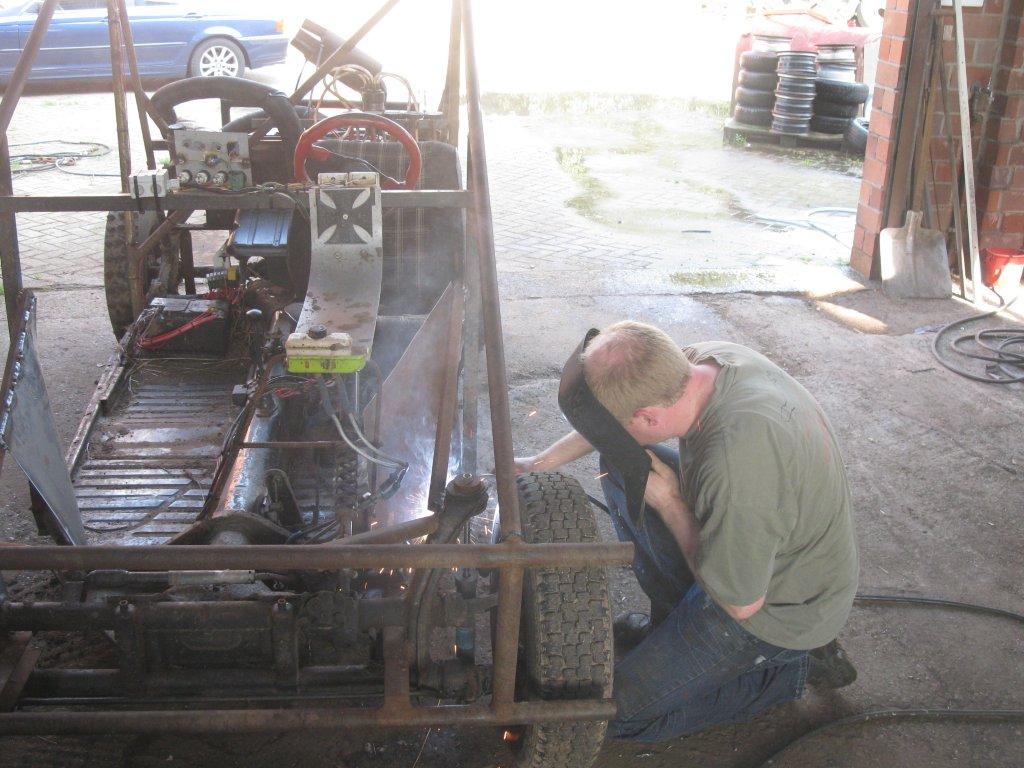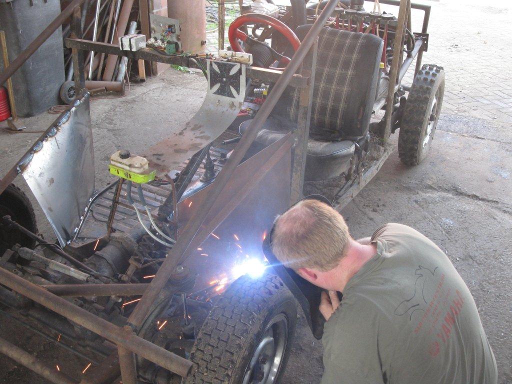 Weiter gings dann auch noch beim Kühlkreislauf. Im Sommer wird uns das Wasser zu warm und das Kart kocht recht fix. Als erstes flog da mal das Thermostat raus und da noch ne Heizung bei Frank über war haben wir die noch in den Kreislauf eingestrickt. Blech gebogen, angeschweißt, angeklemmt. Ganz einfach! Ist ja im Prinzip nix anderes wie der Kühler auch, ein Wärmetauscher. Wir haben quasi nur die Kühlerfläche vergrößert.