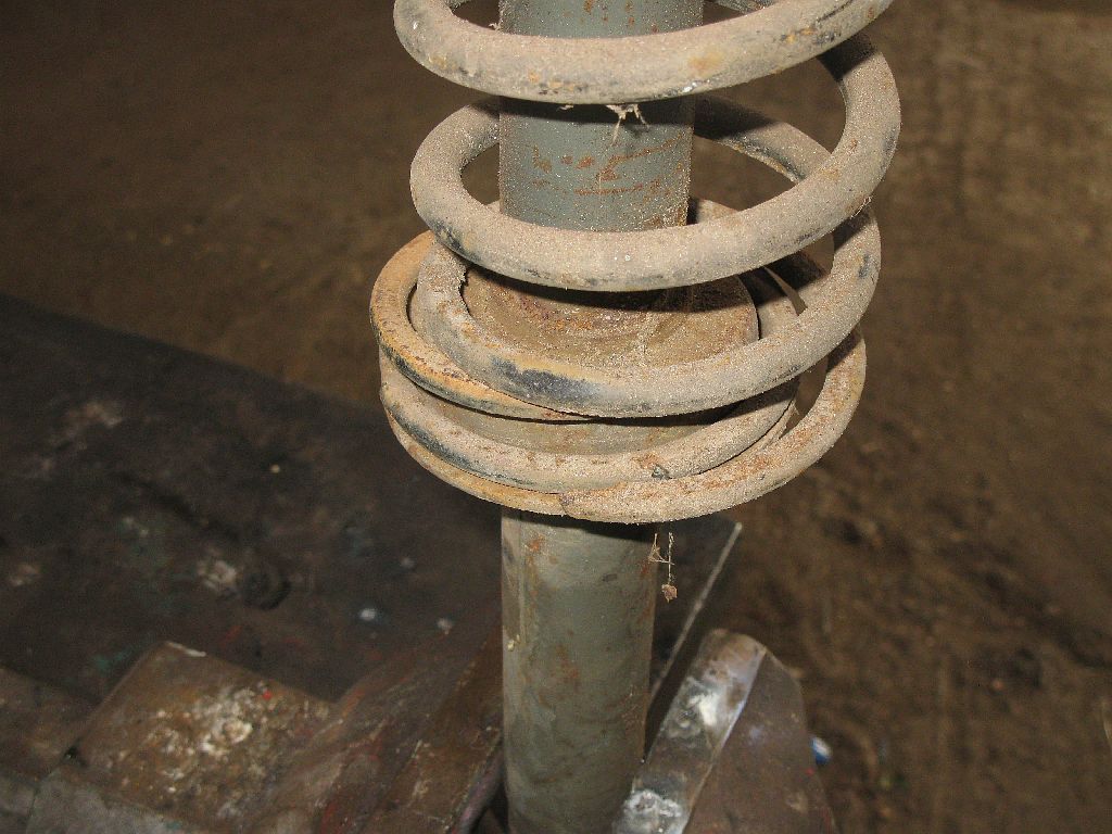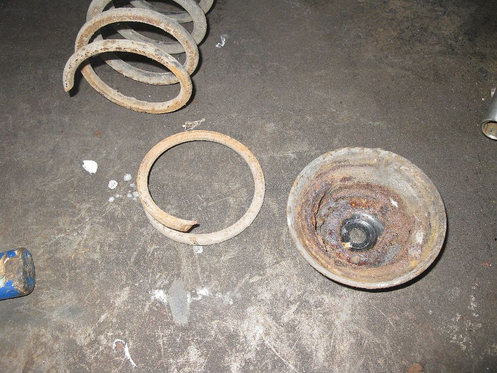 Damit der Golf wieder auf seinen Rädern stehen kann müssen noch die Federbeine rein. Erster augenscheinlicher Mangel: Die Feder ist hin.