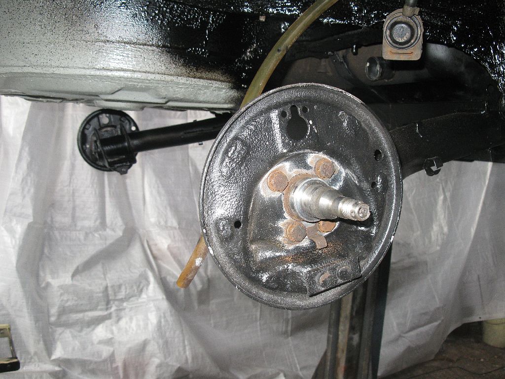 Da noch etwas Zeit übrig war hab noch ein wenig die Farbe von den Auflageflächen der Bremsschilder und der Radnabe entfernt und angefangen, die Hinterachse wieder zu komplettieren.