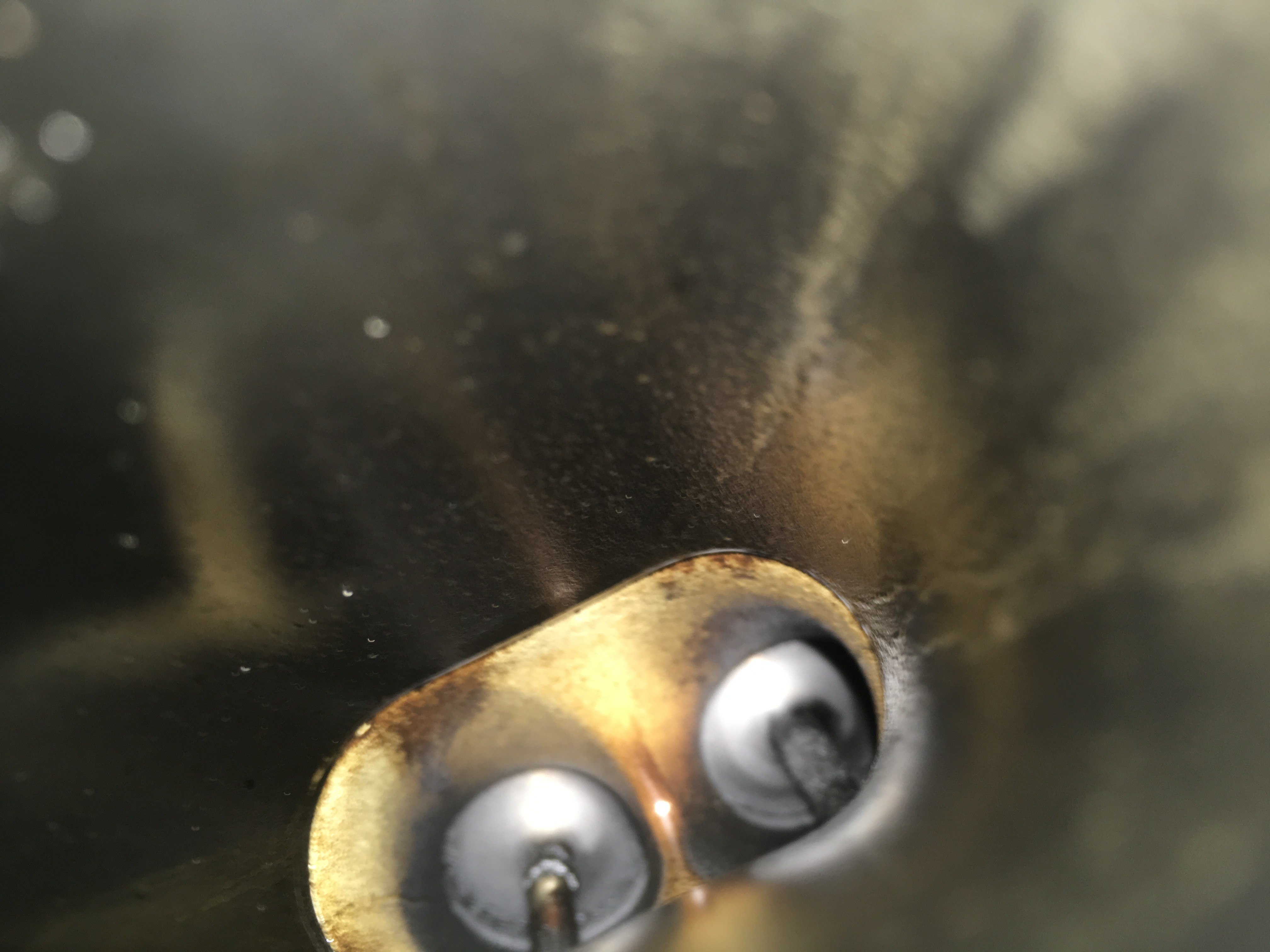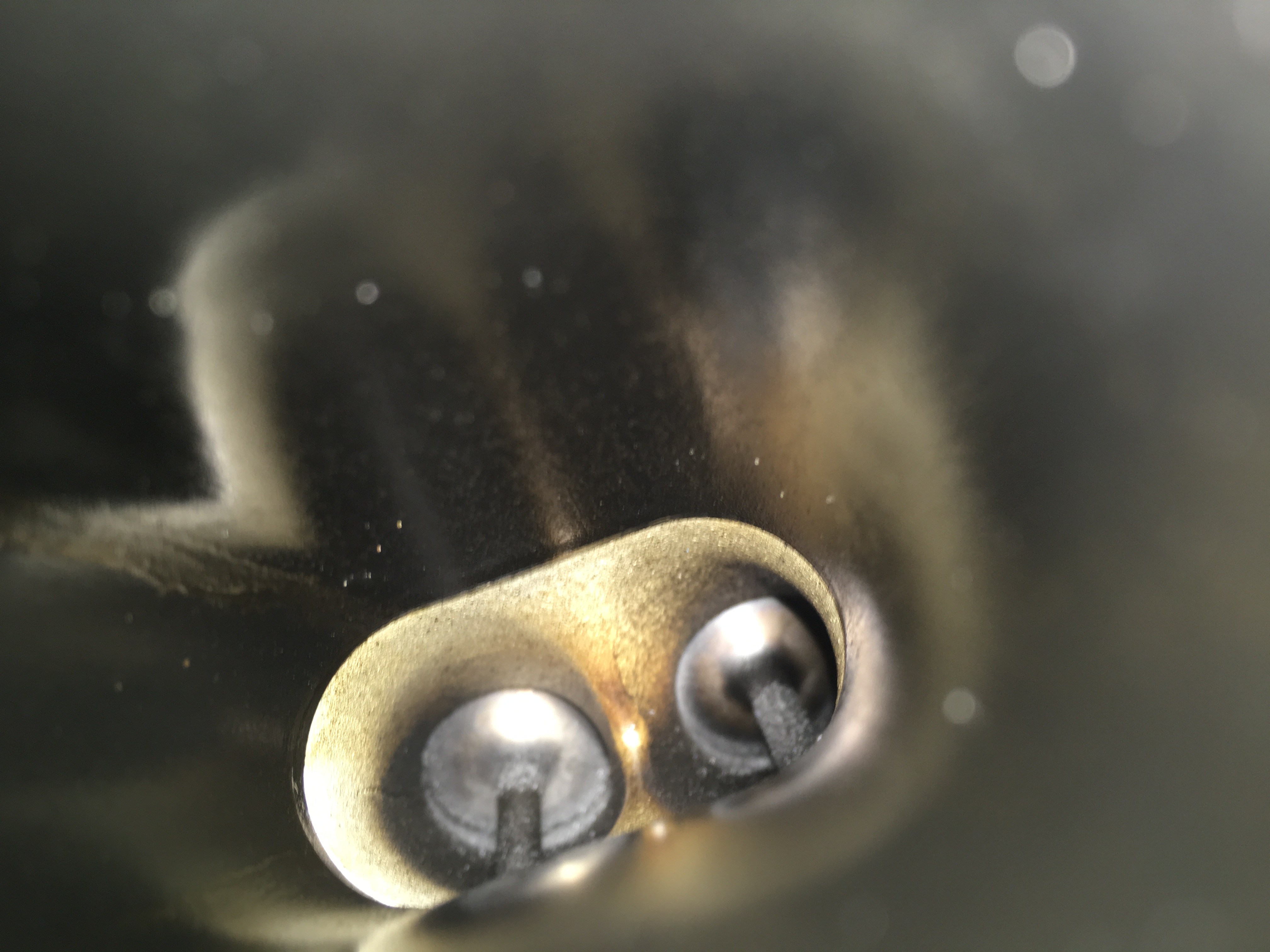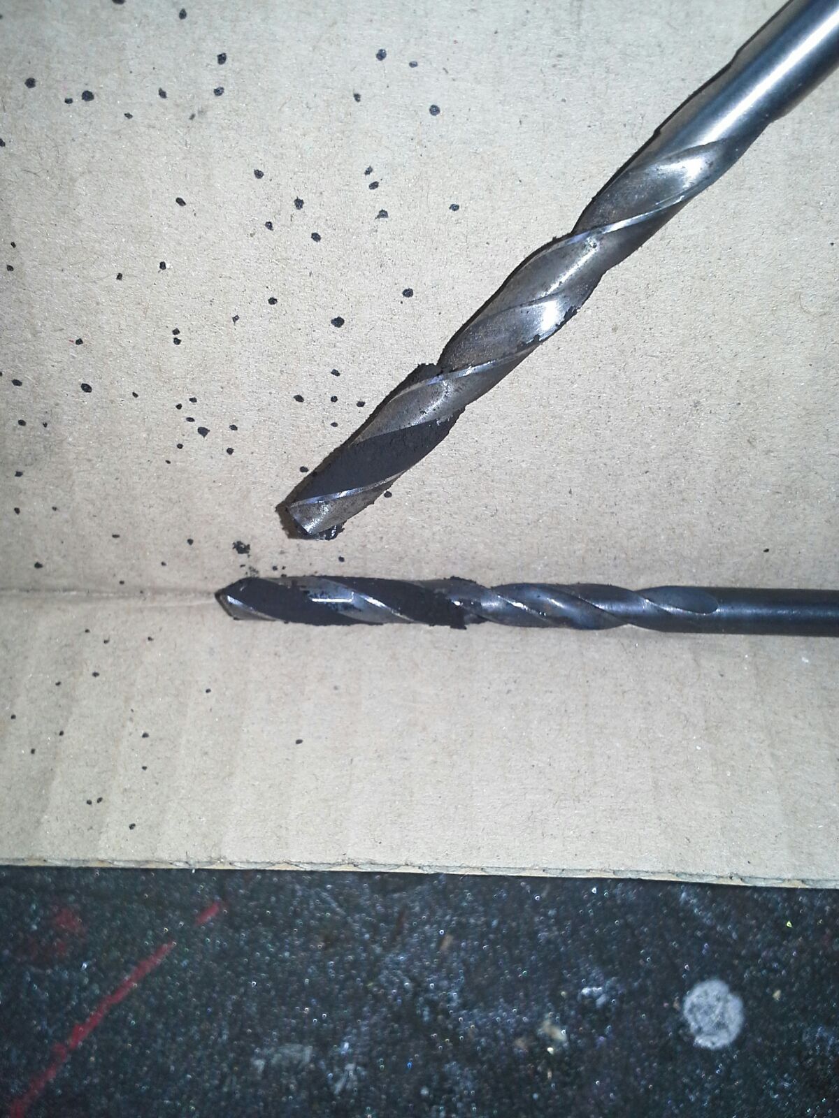 Seht ihr die kleinen Löcher rechts unten neben jedem Auslasskanal? Das sind Querbohrungen die auf die längs im Kopf sitzenden Kanäle treffen und die Luft quasi direkt an die Auslassventile leitet. Der Kanal den wir den ganzen Tag gespühlt haben ist gut frei geworden, er trifft aber nicht direkt ans Ziel, erst diese kleine Bohrungen die wir mit 6,5mm Bohrern quasi „aufbohren“ mussten halfen den Luftstrom wieder dahin zu lenken wo er hin soll. Hier mal der ganze Russ und Ölkohle der die Kanäle verstopft hat. Es war so einiges und das richtig fest, noch etwas mehr Druck und Zeit und wir hätten Diamanten „ernten“ können.
